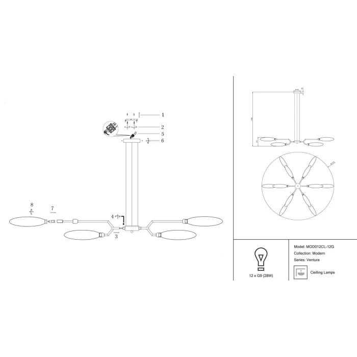 Главная Каталог Люстры и светильники Подвесная люстра Ventura MOD012CL-12G