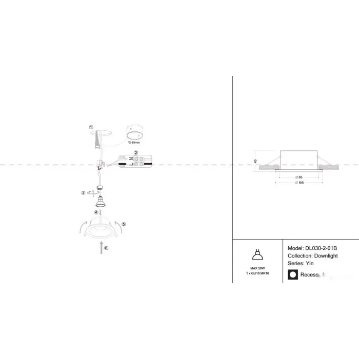 Главная Каталог Люстры и светильники Точечный светильник Yin DL030-2-01B