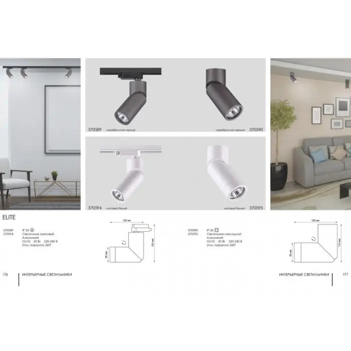 Главная Каталог Люстры и светильники Трековый светильник Elite 370589