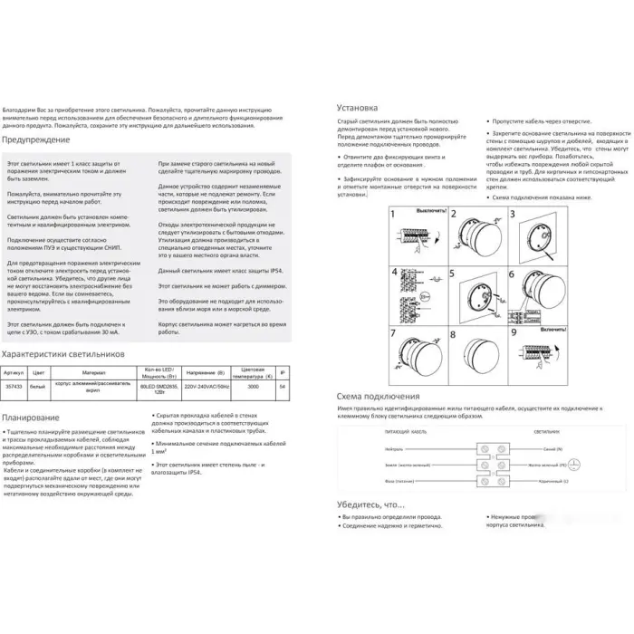 Цвет плафона/абажура: матовый, белый
