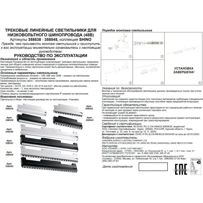 Главная Каталог Люстры и светильники Трековый светильник Shino 358538