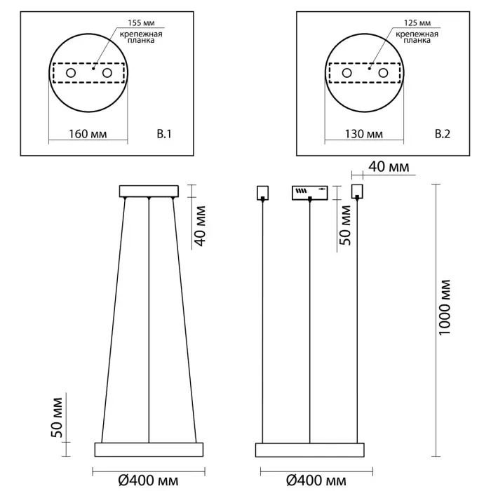 Диаметр светильника: 40 см