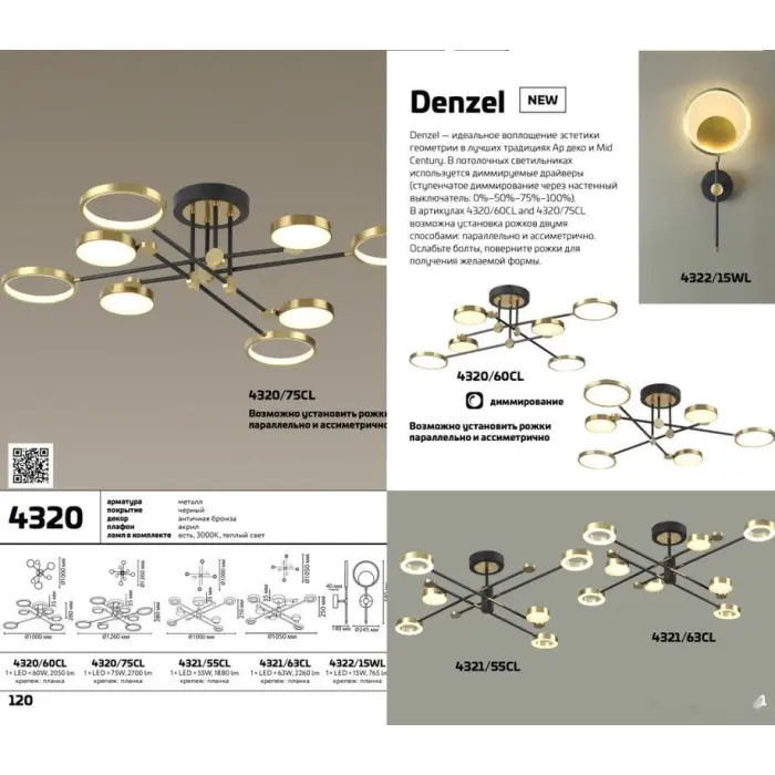 Главная Каталог Люстры и светильники Люстра средней высоты Denzel 4320/60CL