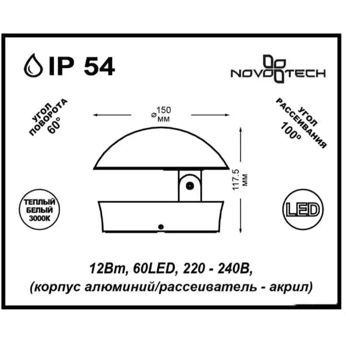 Степень защиты, IP: IP54