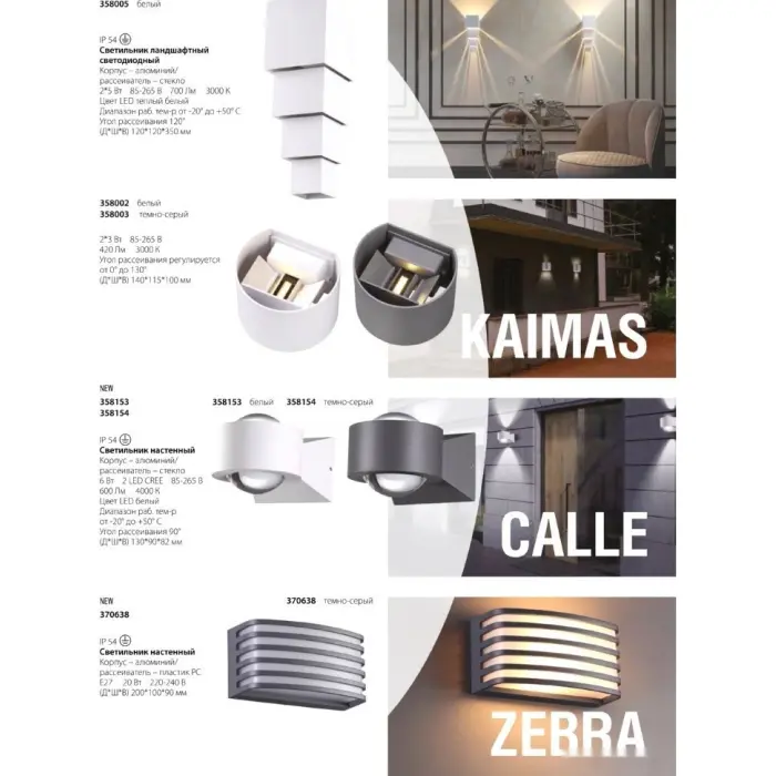 Главная Каталог Люстры и светильники Уличный настенный светильник Kaimas 358003