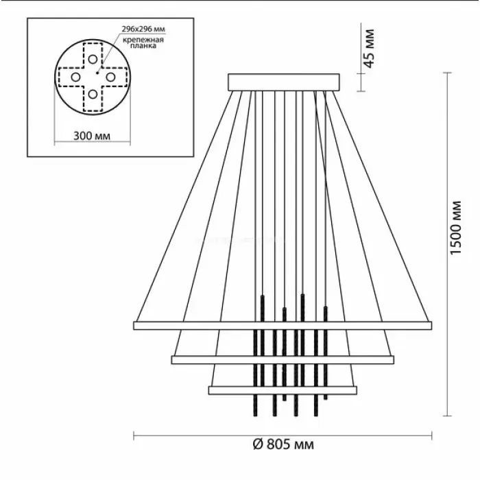 Диаметр светильника: 80.5 см